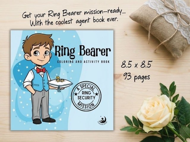 This fun Ring Bearer Coloring and Activity Book helps boys feel confident, proud, and excited about their special wedding role.